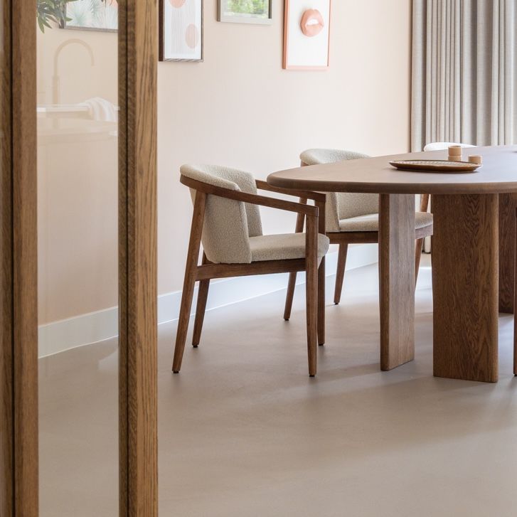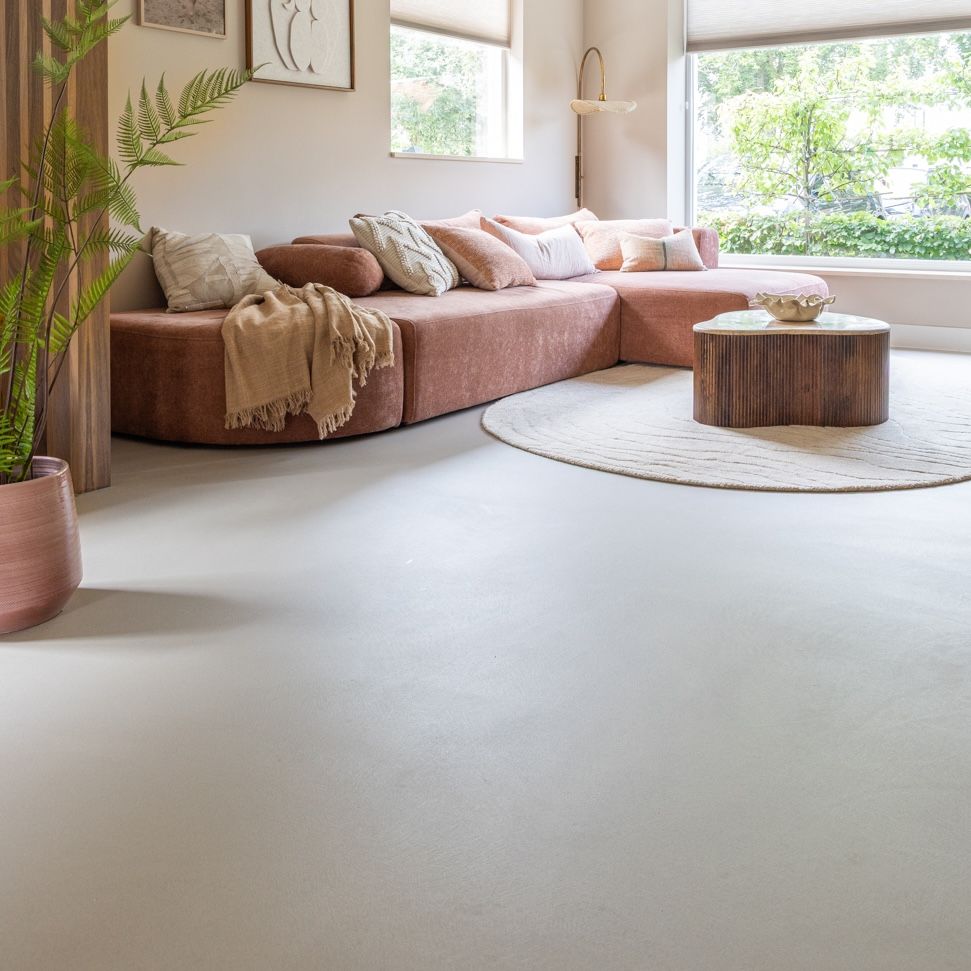 De warme beige gietvloer combineert prachtig met de huidige trends zoals Japandi, Scandinavisch minimalisme en modern landelijk. Al deze stijlen draaien om natuurlijke materialen, zachte lijnen en een serene sfeer. Een gietvloer in warm beige versterkt dat gevoel van eenvoud en harmonie, zonder kil aan te voelen. Bovendien zorgt de naadloze afwerking voor een ruimtelijk effect en een moderne uitstraling.