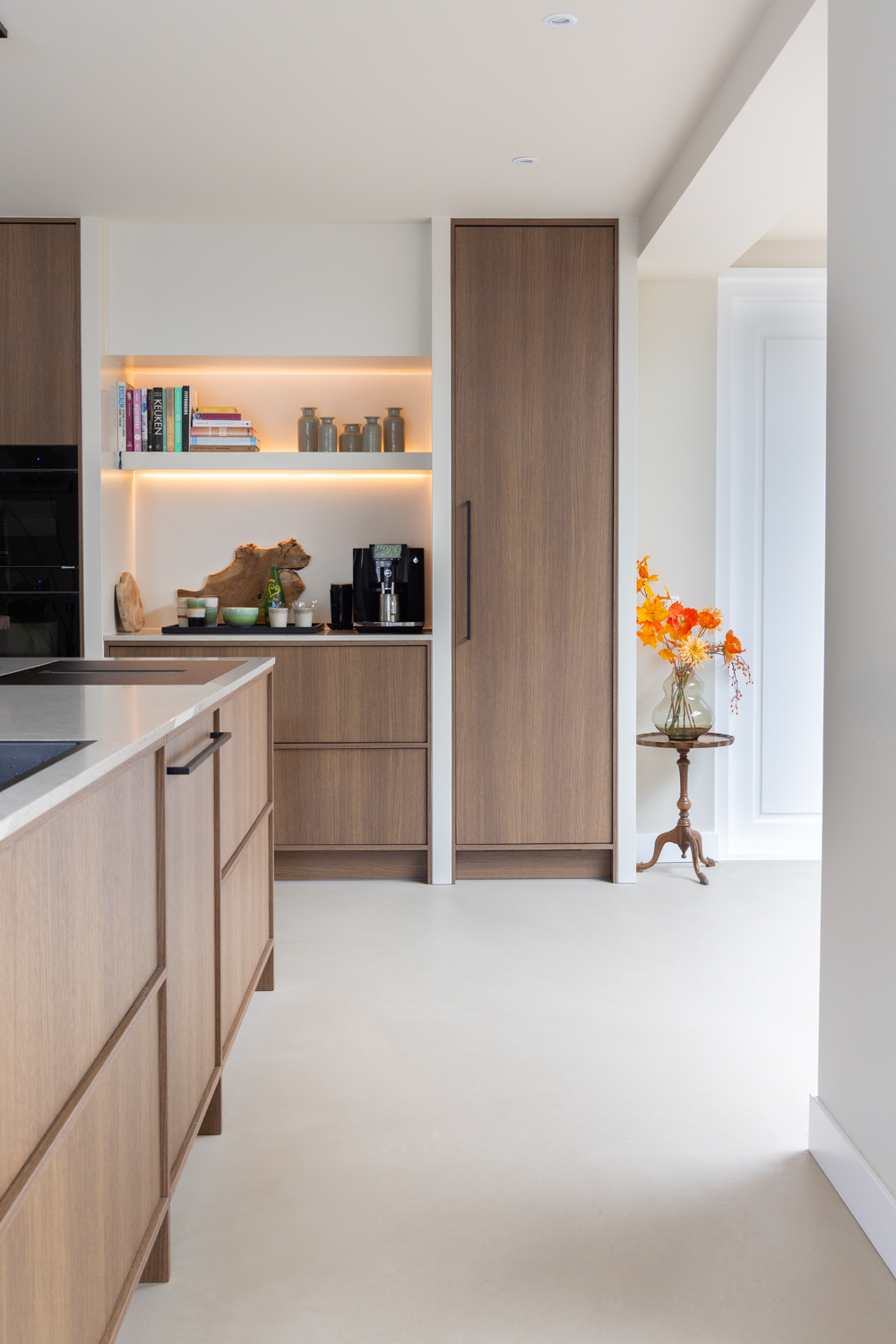Tijdens het eerste oriënterende gesprek kun je alvast een aantal kleurstalen meenemen om te ontdekken wat er allemaal mogelijk is. Het is handig om daarbij ook wat contrastkleuren te kiezen – bijvoorbeeld een lichtere, donkerdere, grijzere en warmere tint. Leg de samples op verschillende plekken in huis om te zien hoe het licht invloed heeft op de kleurbeleving. Wat in de keuken perfect lijkt, kan in de woonkamer ineens te donker ogen.
